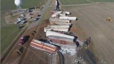 «كارثة في كنتاكي».. انقلاب 30 عربة قطار محملة بمواد كيميائية خطرة